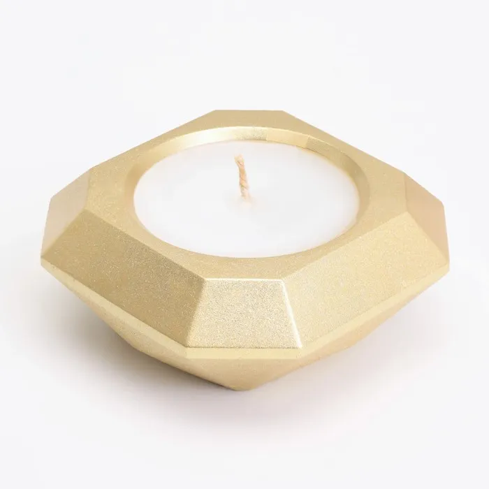 Свеча в подсвечнике из гипса с гладкими гранями, 9.5×9 см, серо-коричневый
