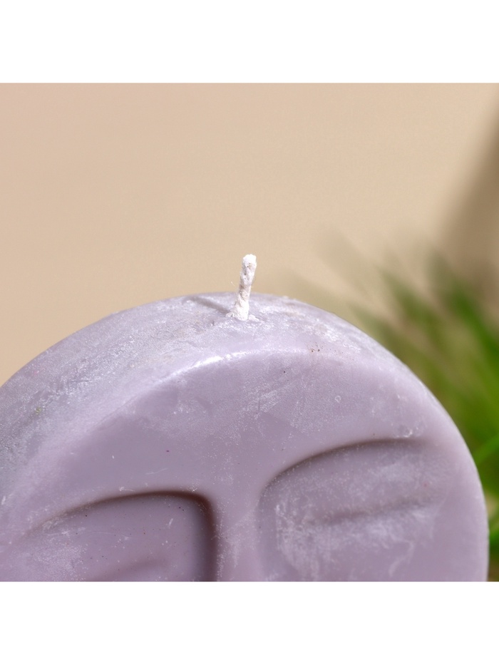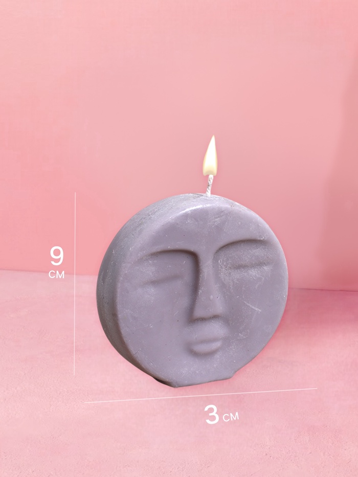 Фигурная свеча из соевого воска в форме рельефного лунного диска. Её выразительная текстура и долгое горение создают в комнате мягкий, динамичный свет, напоминающий об игре света и тени на поверхности спутника.