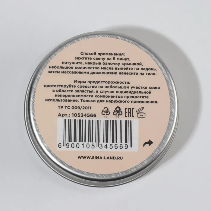 Свеча массажная для рук и ног, 55 мл, аромат ваниль — Характеристики