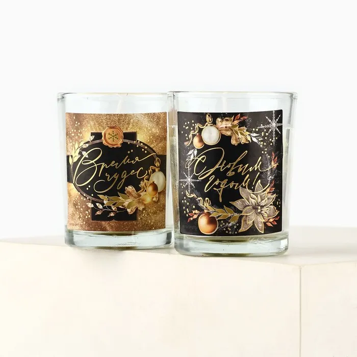 Свеча гелевая в стакане «Новый год: Золотой шик», без аромата, скретч-слой, 2,5 х 2,5 х 2,5 см