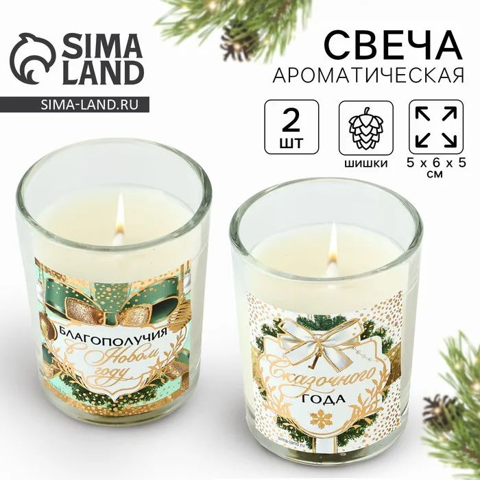 Свечи новогодние «Благополучия», на Новый год, аромат еловые шишки, 2 шт., 5×6 см