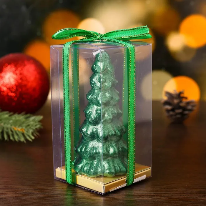 Свеча новогодняя "Ёлка" 10х5см, зелёный металлик — Характеристики