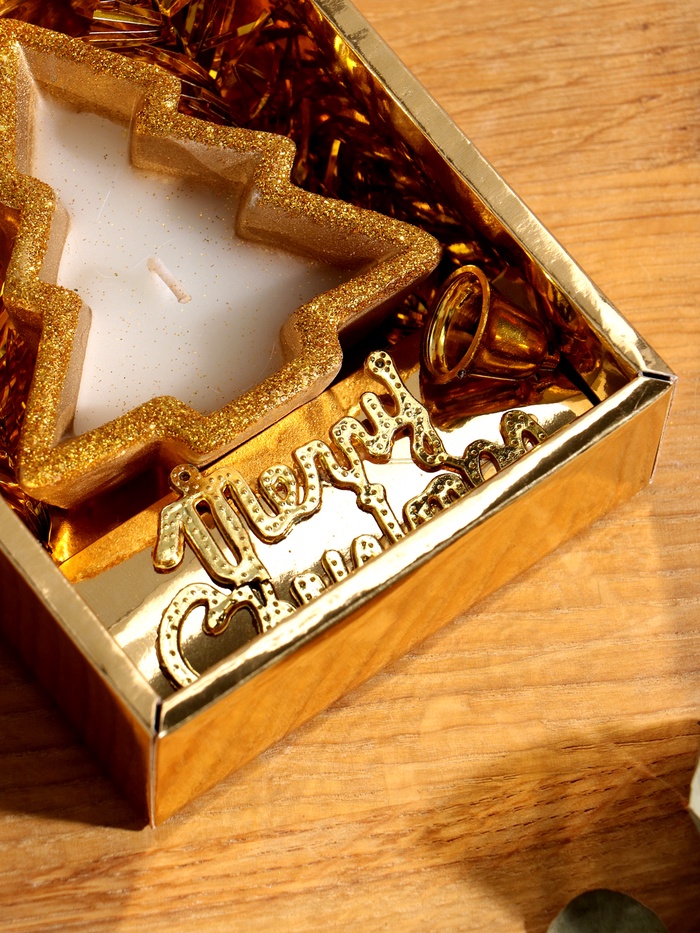 Свеча новогодняя с декором «Золотая ёлочка», 12×10×4 см — Характеристики