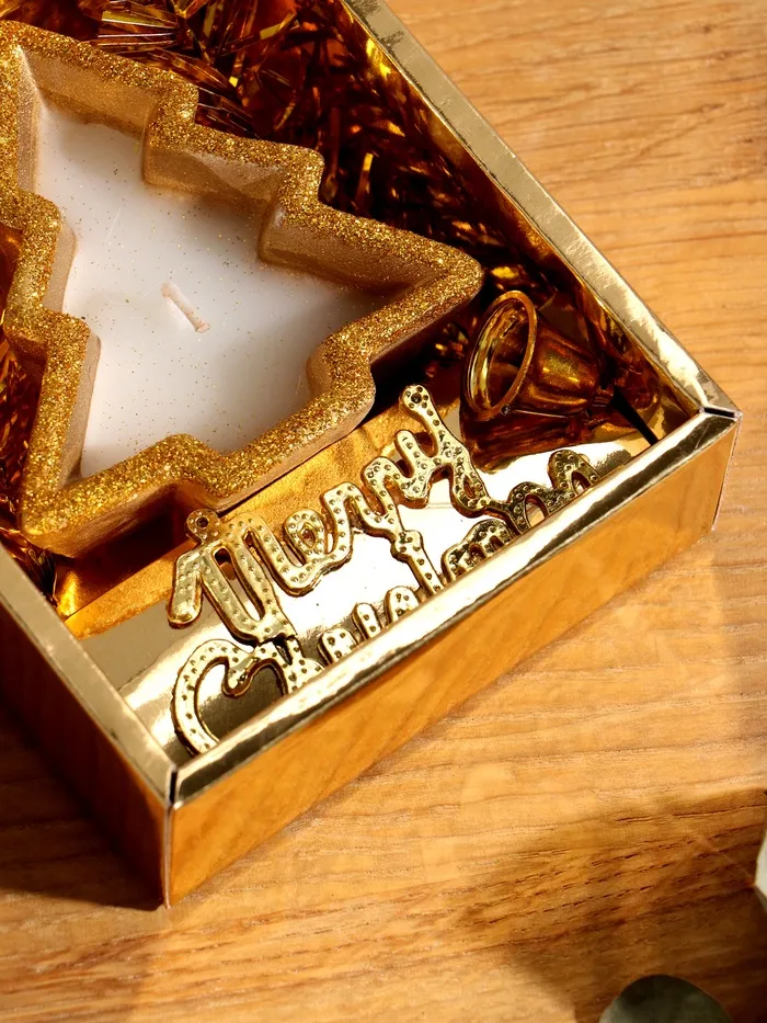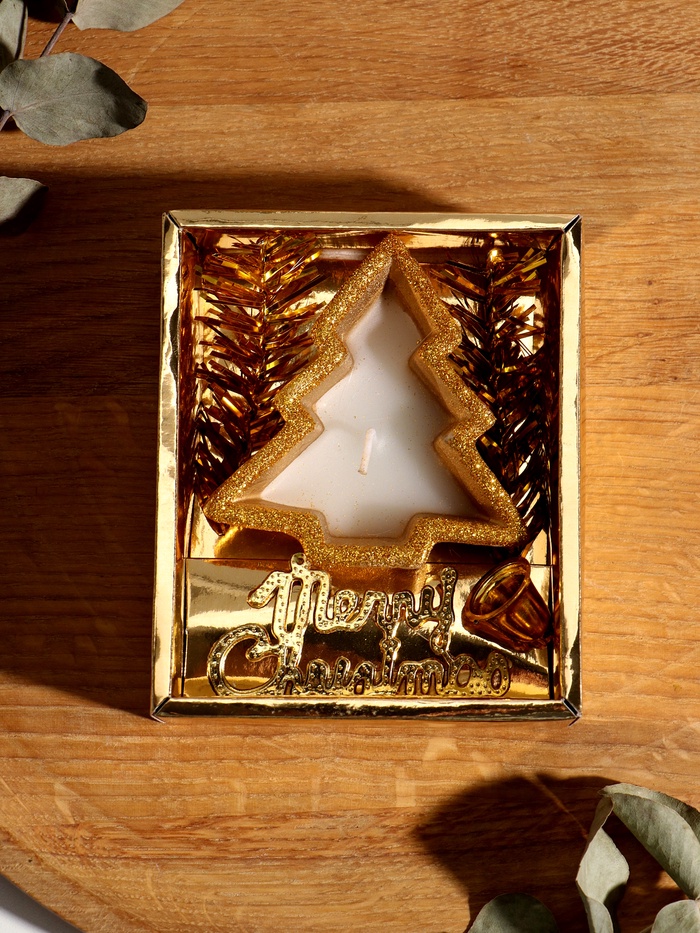 Свеча новогодняя с декором «Золотая ёлочка», 12×10×4 см