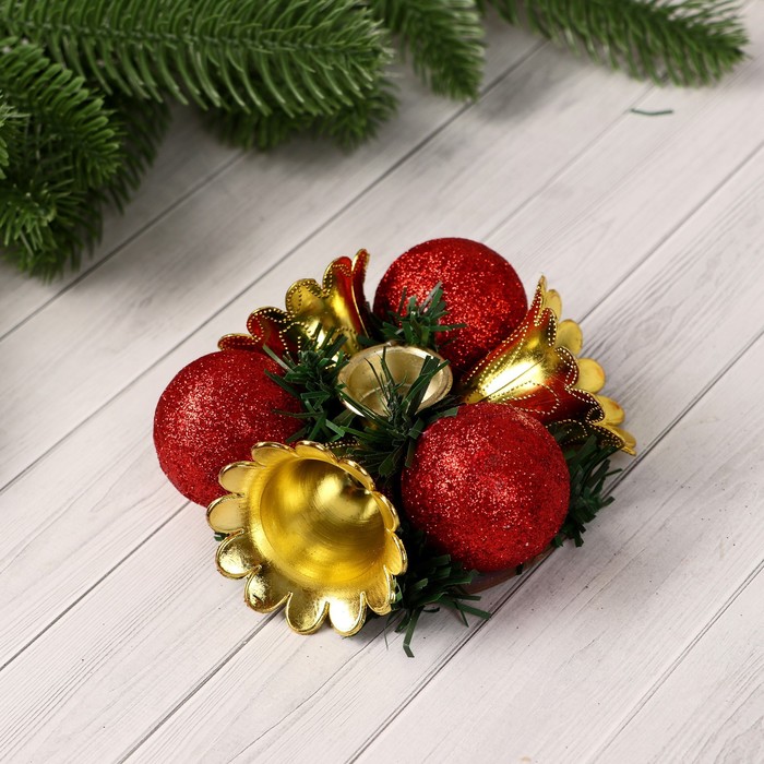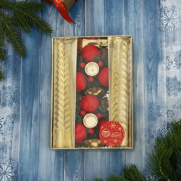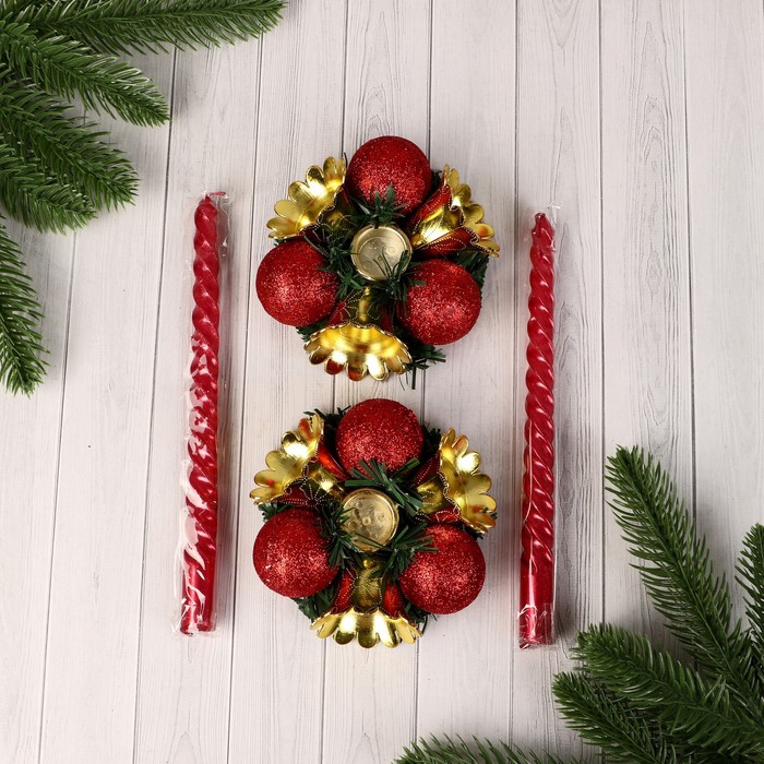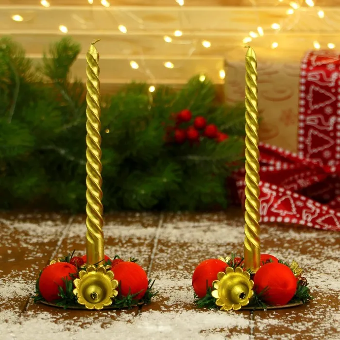 Свеча новогодняя с подсвечником «Шарик, бусина», набор 2 шт., 14.5×20 см, красно-золотой — Характеристики