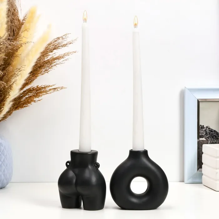 - Набор из 2 свечей с подсвечником высотой 20 см.