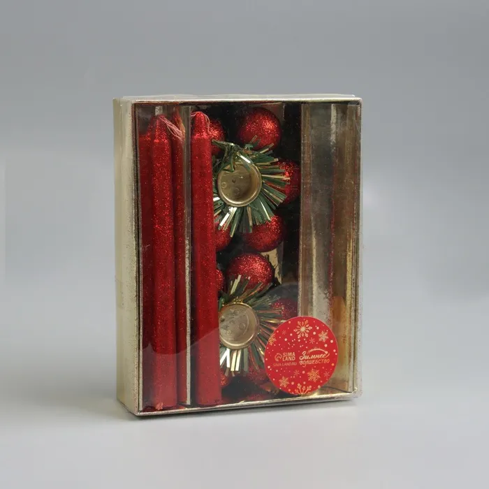 Свеча новогодняя с подсвечником «Шарики», набор 2 шт., 15 см — это оригинальное украшение для праздничного стола, а ещё это красивый новогодний подарок. Порадуйте себя и близких сказочным настроением!
