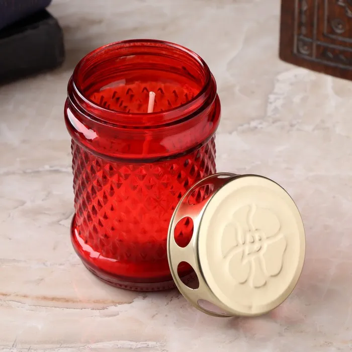 Свеча парафиновая поминальная в стеклянном подсвечнике, 11х7 см, красная — Характеристики