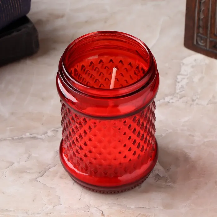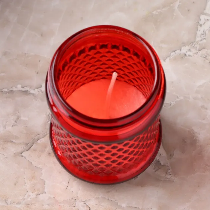 Свеча парафиновая поминальная в стеклянном подсвечнике, 11х7 см, красная