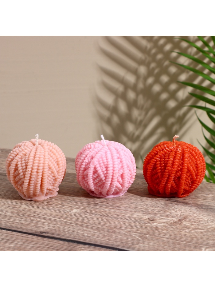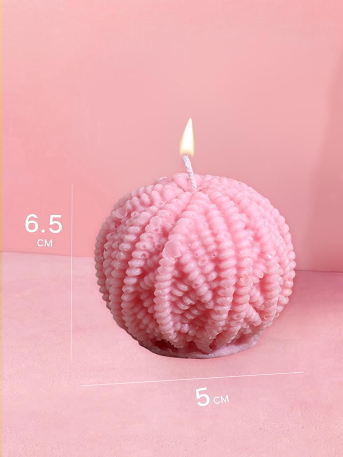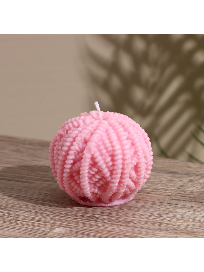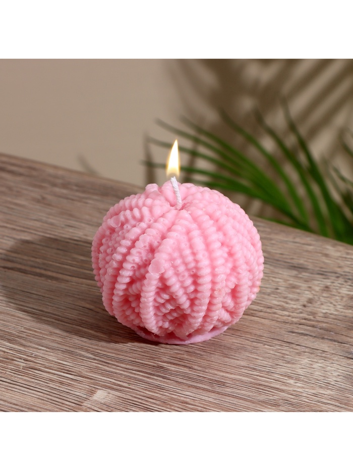 Крупная свеча из соевого воска в форме шара с фактурной поверхностью, напоминающей клубок пряжи. Ее долгое горение и чистый воск создают в помещении постоянный источник мягкого, успокаивающего света на много вечеров подряд.