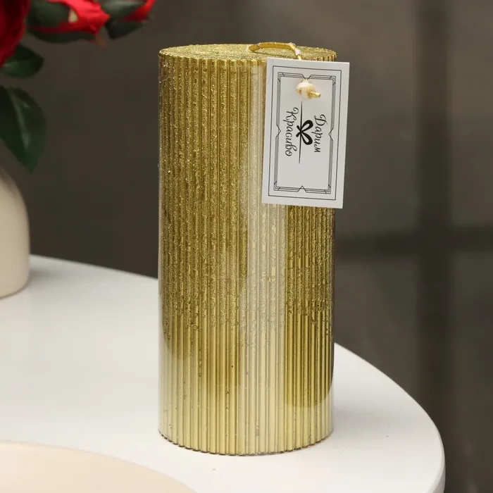 Свеча "Рельеф", 7×15см, золотой металлик