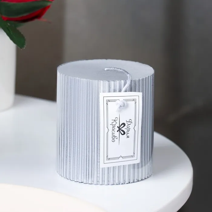Свеча "Рельеф", 7×7.5см, серебряный металлик