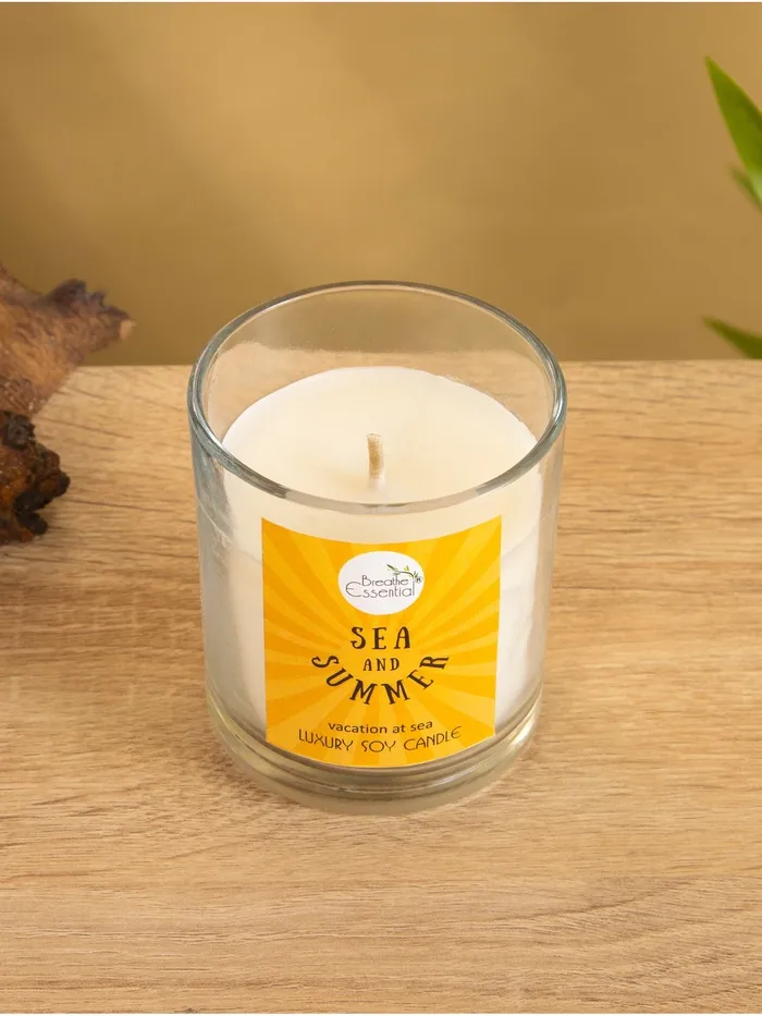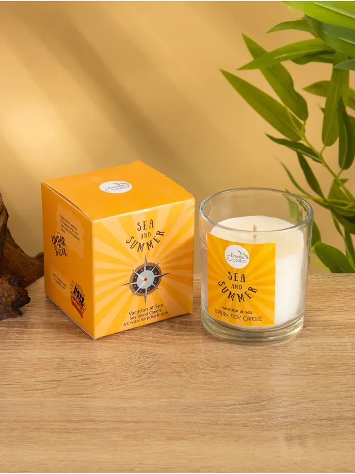 Свеча с кристаллом внутри Sea and Summer Vacation at Sea, 120 г, соевый воск, морской — Характеристики