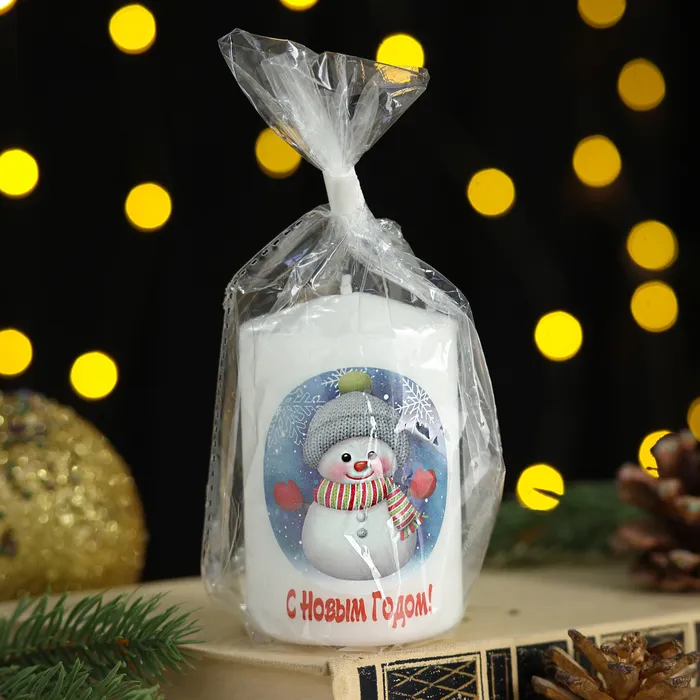 Свеча столбик с рисунком «Новогодние мотивы» 50×80 мм, Снеговик