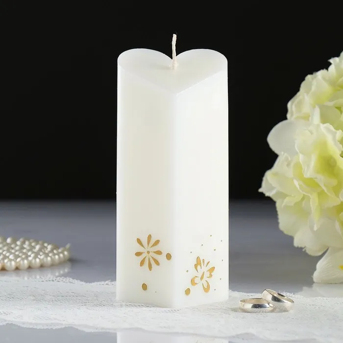 Свеча свадебная "Сердце", 6,8х15 см, белая, домашний очаг