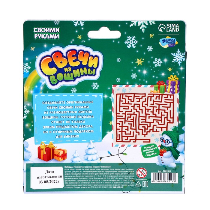 Свеча своими руками из вощины на новый год «Снежинка», набор для творчества — Характеристики