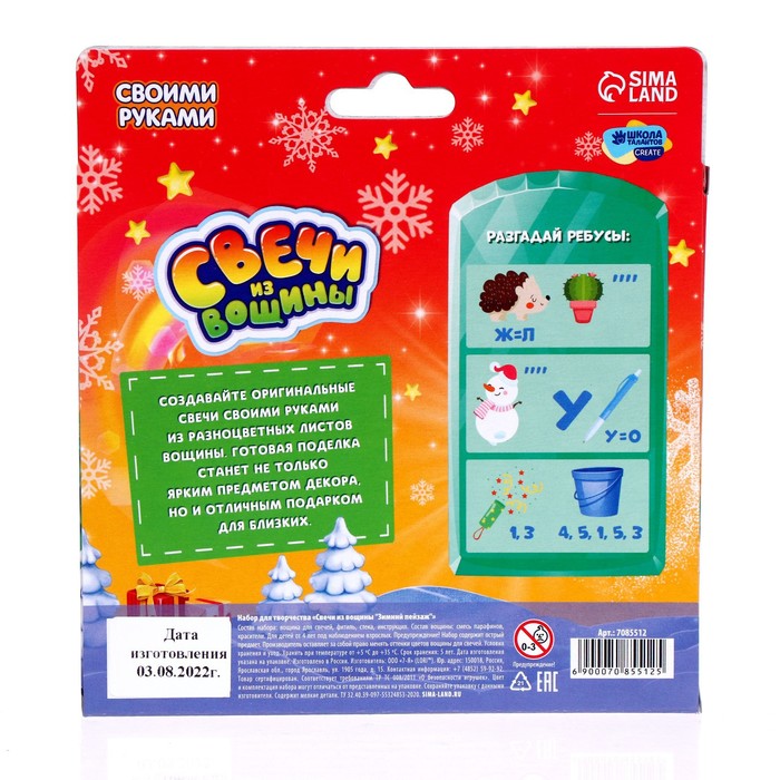 Свеча своими руками из вощины на новый год «Зимний пейзаж», набор для творчества — Характеристики