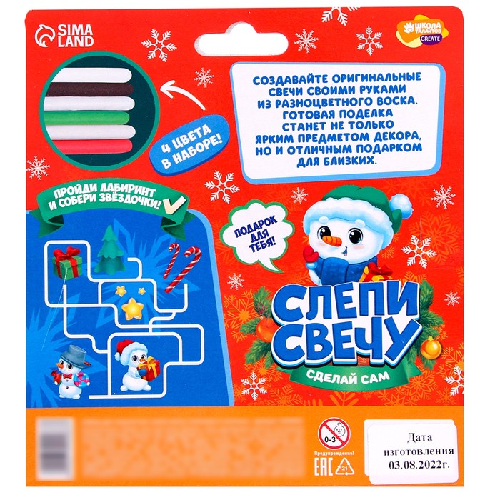 Свеча своими руками на новый год «Снеговик в колпаке», набор для творчества — Характеристики