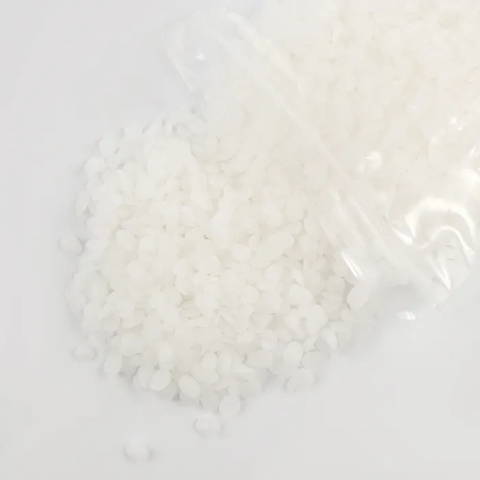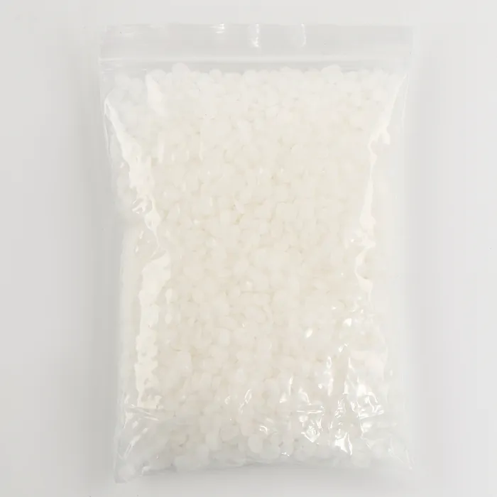 - Положи хлопья воска и кусочек красителя в ёмкость которую можно нагревать. Помести её в кастрюлю с горячей водой. Нагревай воск на водяной бане до жидкого состояния.