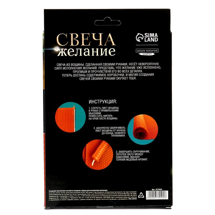 Набор для создания магических свечей из вощины «Свеча для исполнения желаний» - это ваше личное волшебство, которое поможет вам превратить мечты в реальность.