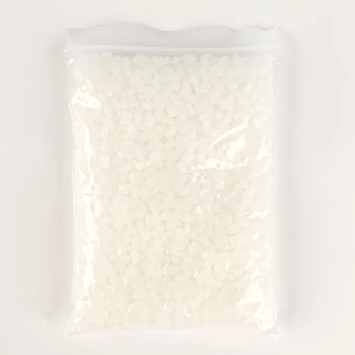 - Положи 3/4 хлопьев воска в ёмкость которую можно нагревать. Помести её в кастрюлю с горячей водой. Нагревай воск на водяной бане до жидкого состояния.