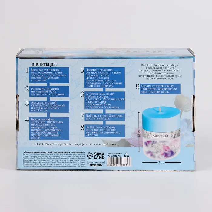 Свеча своими руками. Создание цветных свечей с цветочным декором «Полевые цветы», набор для творчества — Характеристики