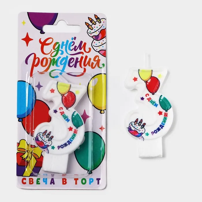 Свеча цифра для торта «3», 3,7 х 7,2 см — Характеристики