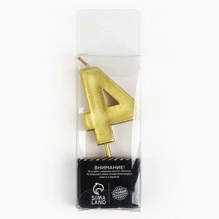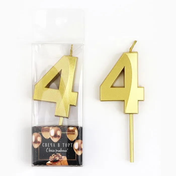 Свеча цифра для торта «4», золото, 2,3 х 8 см — Характеристики
