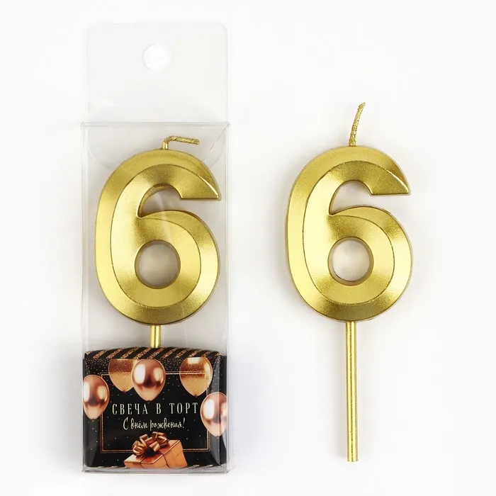 Свеча цифра для торта «6», золото, 2,3 х 8 см — Характеристики