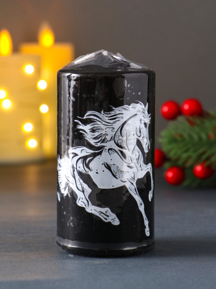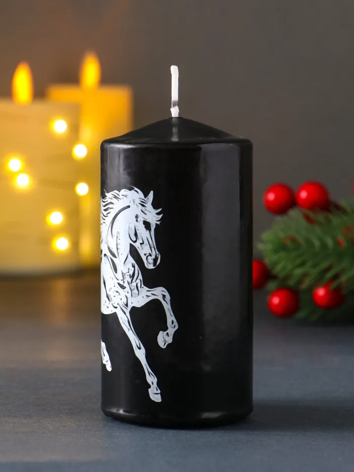 Сделанная из парафина без ароматизации, свеча обеспечивает равномерное горение и безопасное использование, подчеркнув символику года лошадь в интерьере или на праздничных столах.