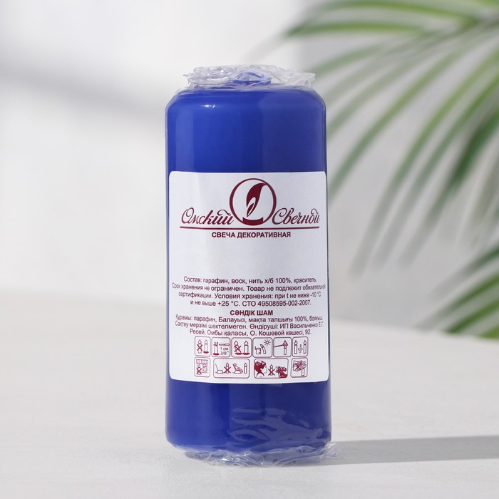 Свеча - цилиндр, 4х9 см, 11 ч, 90 г, синий — Характеристики