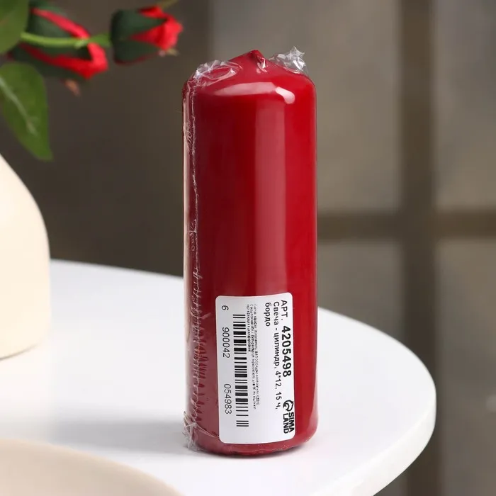 Свеча - цилиндр, 4×12 см, 15 ч, бордо — Характеристики