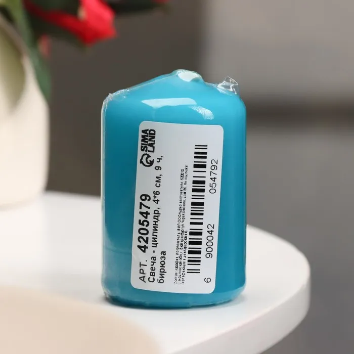 Свеча - цилиндр, 4×6 см, 9 ч, бирюза — Характеристики