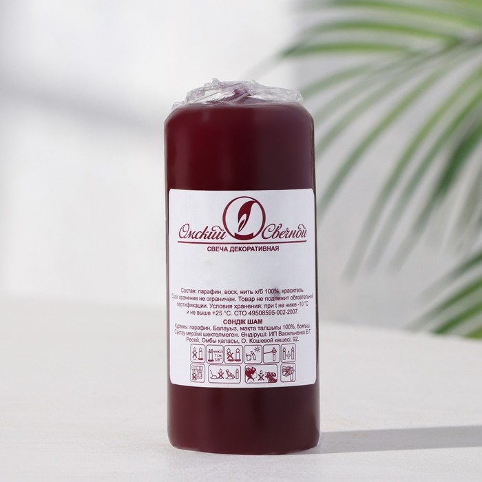 Свеча-цилиндр, 4×9 см, 11 ч, 90 г, бордовая — Характеристики