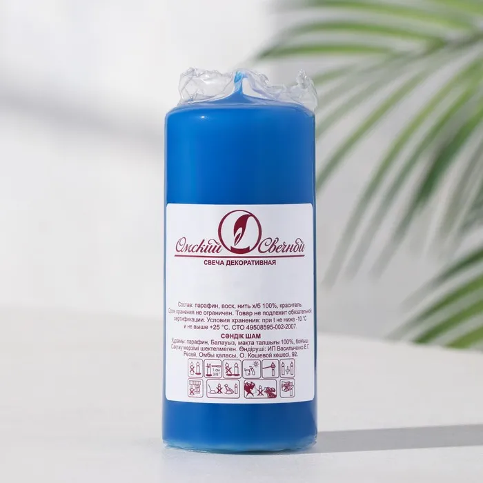 Свеча-цилиндр, 4×9 см, 11 ч, 90 г, синяя — Характеристики