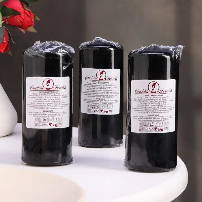 Свеча цилиндр, 5х11,5 см, набор 3 шт, черная — Характеристики