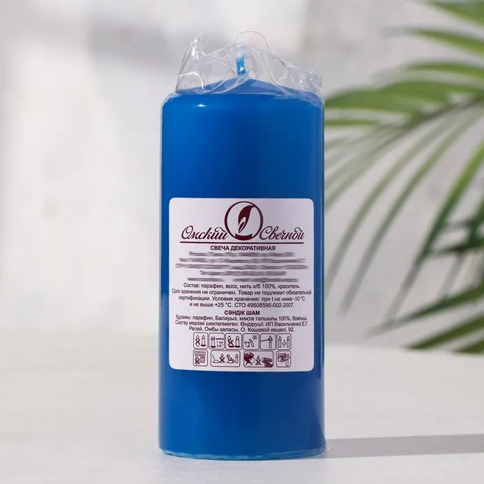 Свеча-цилиндр, 5×11.5 см, 25 ч, 175 г, синяя — Характеристики