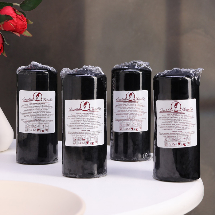 Свеча-цилиндр, 5×11.5 см, набор 4 шт., чёрная — Характеристики