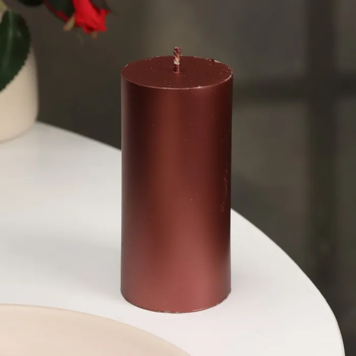 Свеча-цилиндр гладкая, 5х10 см, винная, металлик, 6 ч