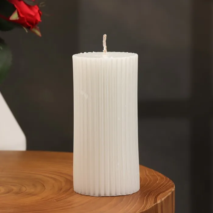 Свеча-цилиндр с гранями, 5х10 см, жемчужная, 6 ч