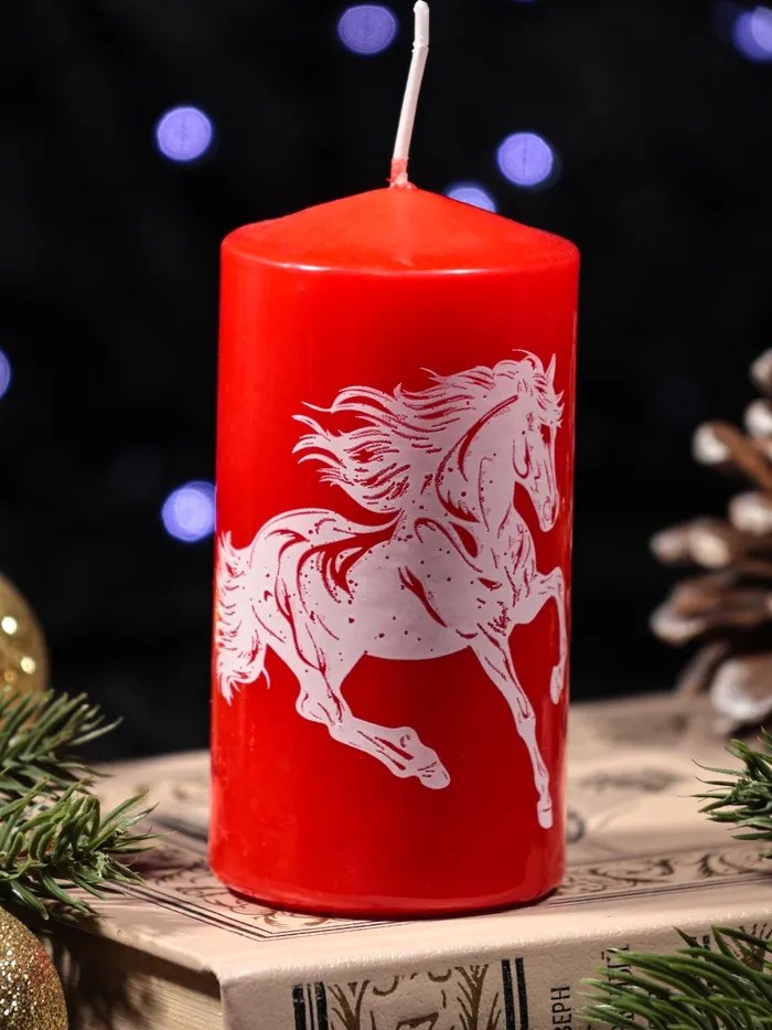 Представляем яркий элемент декора, который наполнит ваш дом динамикой и энергией — свечу-цилиндр с эффектной накаткой в виде скачущего коня. Её насыщенный красный цвет и выразительный дизайн создают атмосферу праздника и свободы, делая её идеальным выбором для украшения интерьера или создания особого настроения.