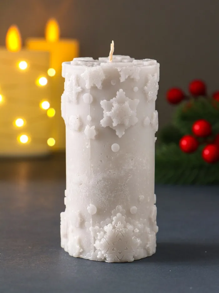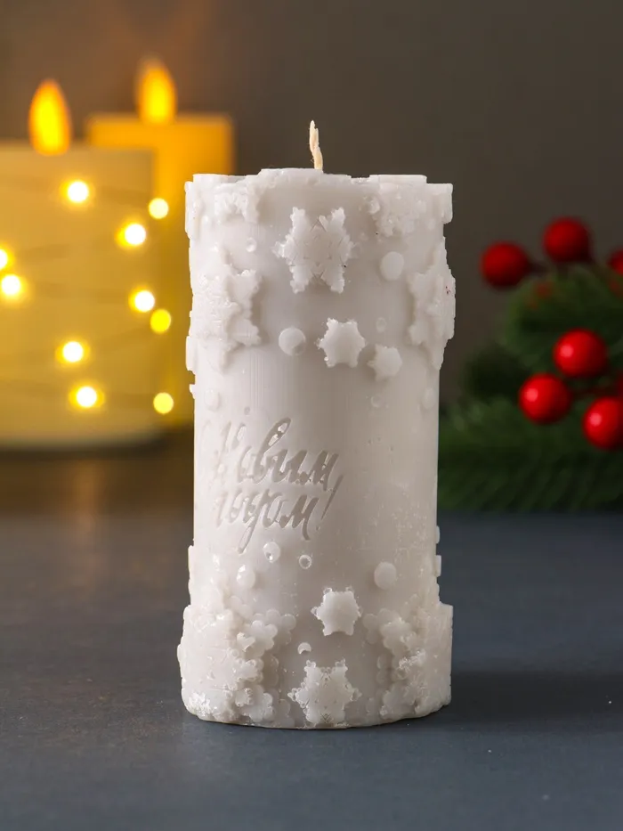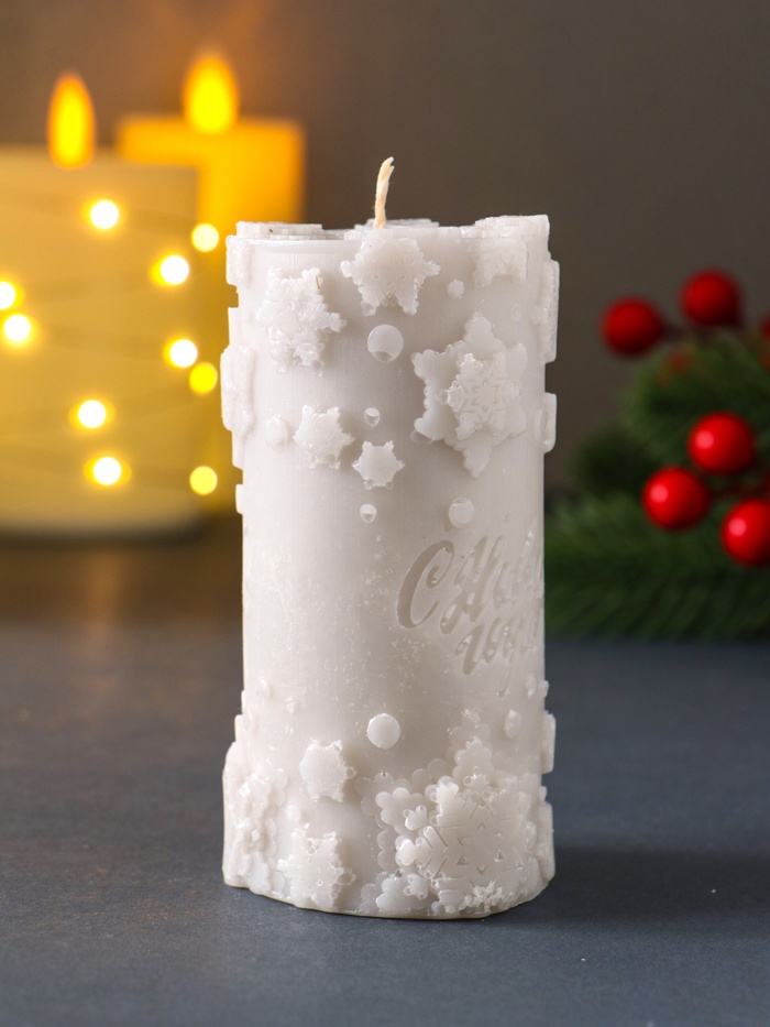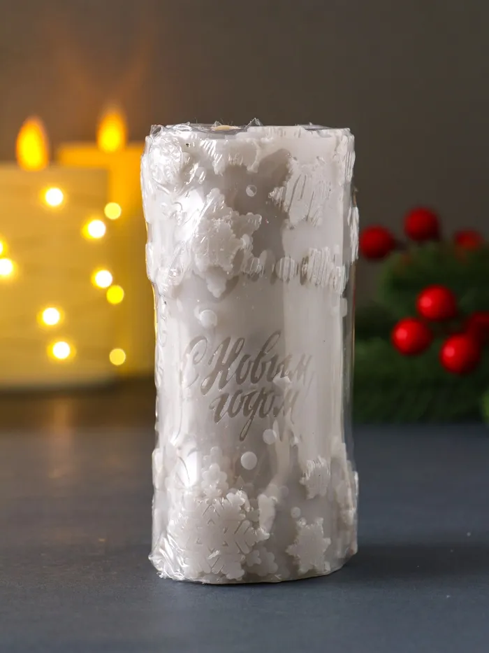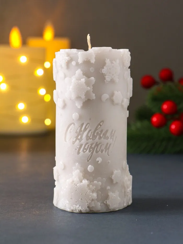 Свеча-цилиндр «С Новым годом», 55×105 мм, серебро — Характеристики
