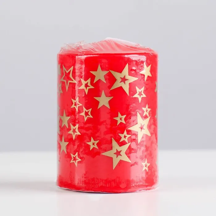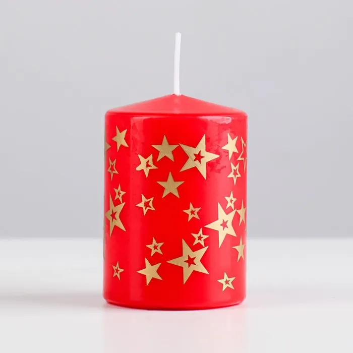 Свеча-цилиндр с узорами «Звёзды», 5.6×8 см, красная с золотым — Характеристики