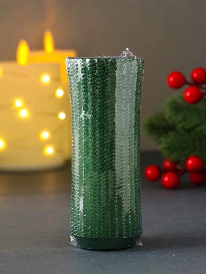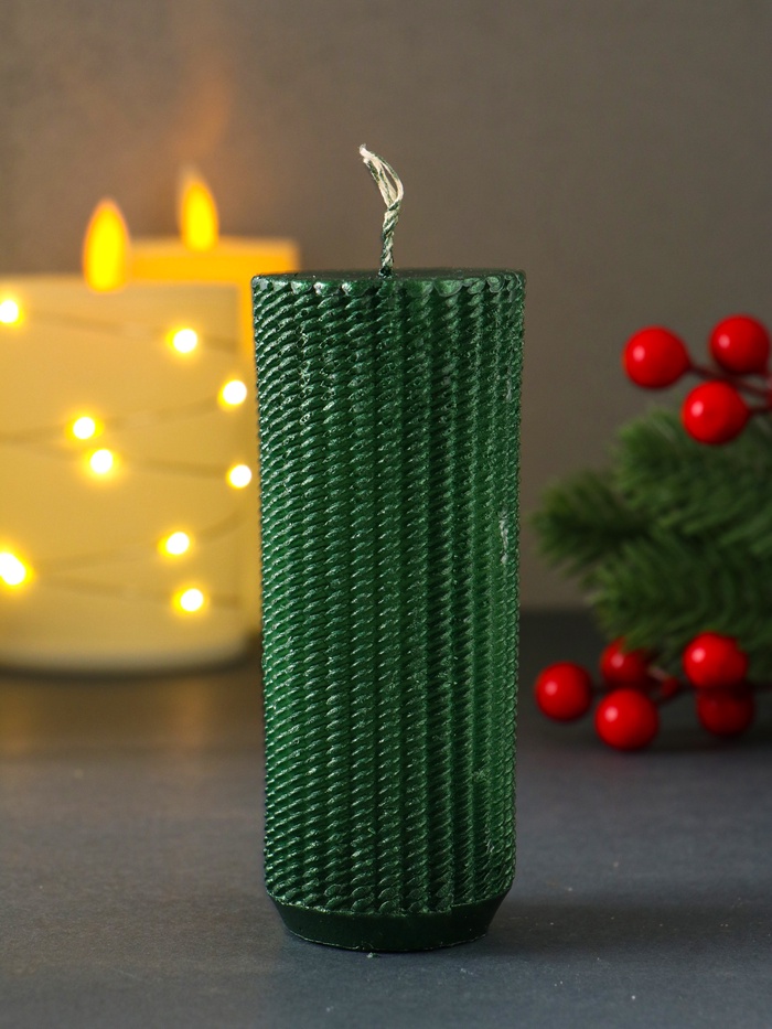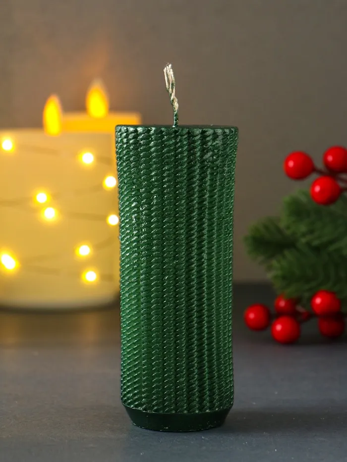Свеча-цилиндр «Вязаный», 47×117 мм, лак, зелёная