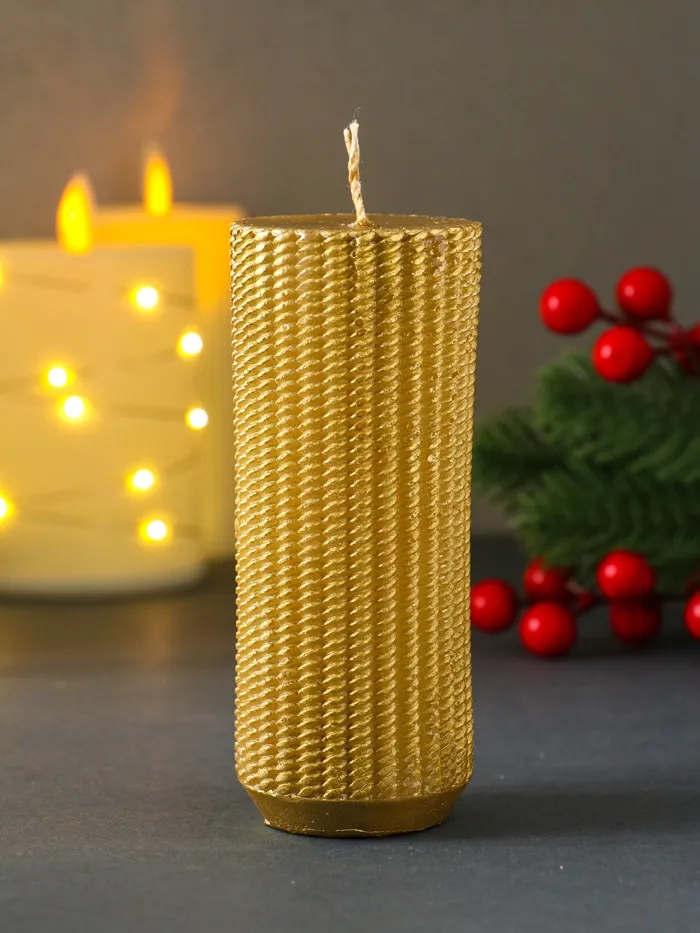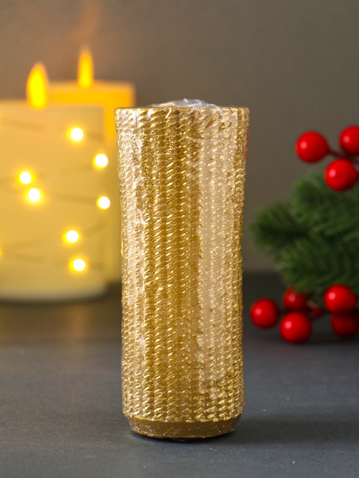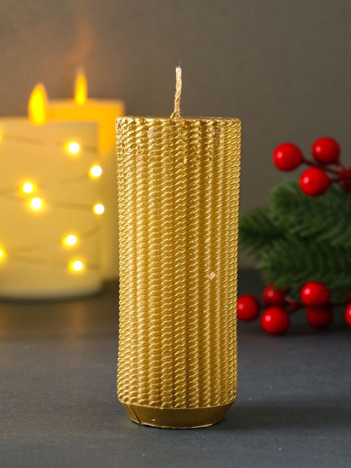 Свеча-цилиндр «Вязаный», 47×117 мм, лак, золотая — Характеристики