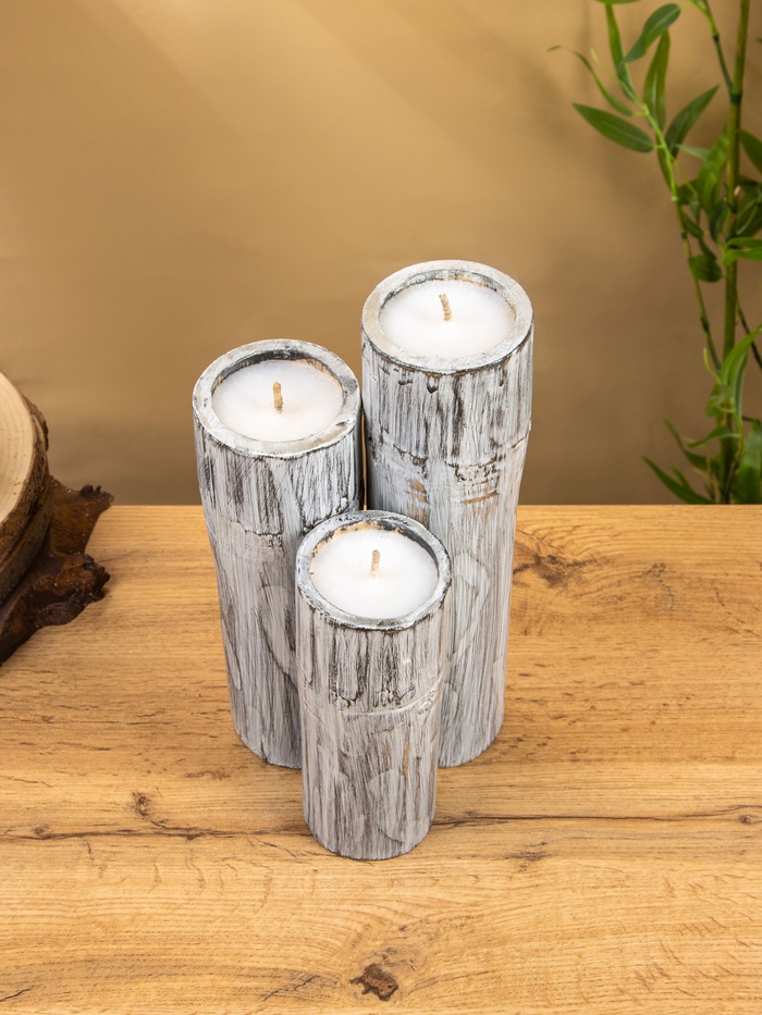 Свеча в бамбуке тройная, 15×13×30 см, 100 мл, серая — Характеристики