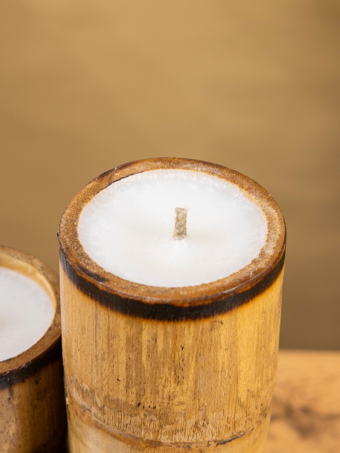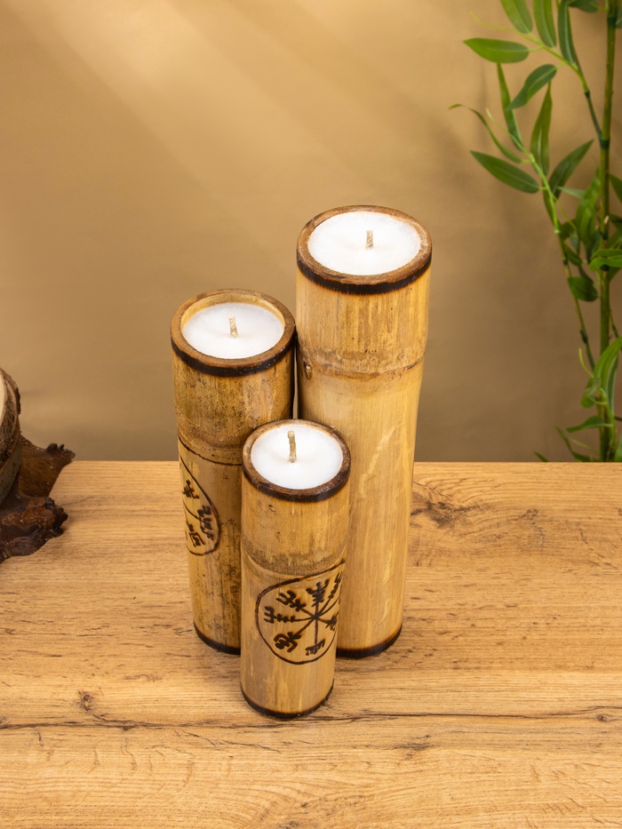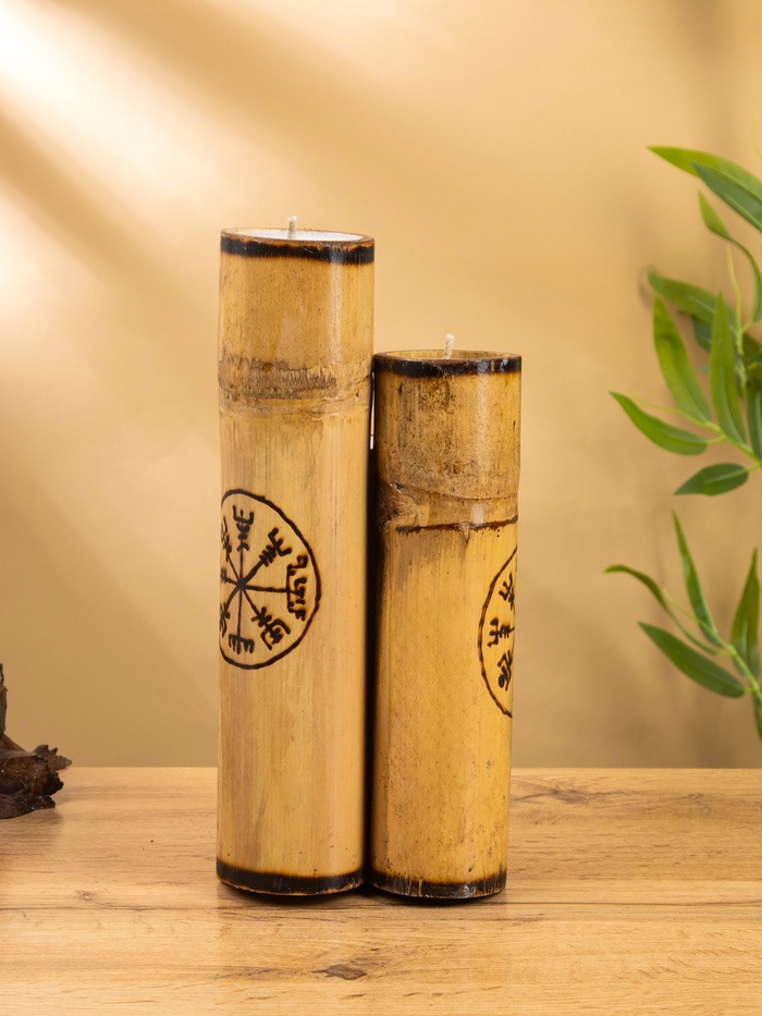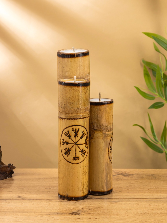 Свеча в бамбуке тройная «Руны», 13×14×30 см, 100 мл, бежевая — Характеристики