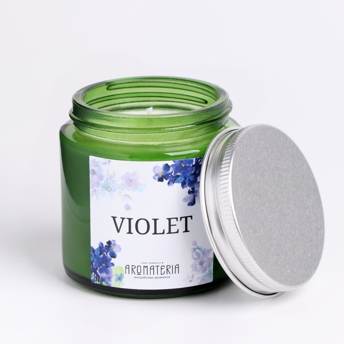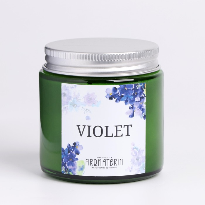 Свеча в банке Spring Flowers. Violet, из соевого воска, 25 ч, 120 мл, фиалка
