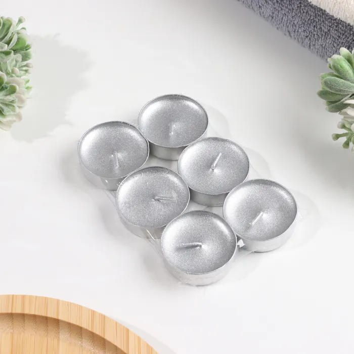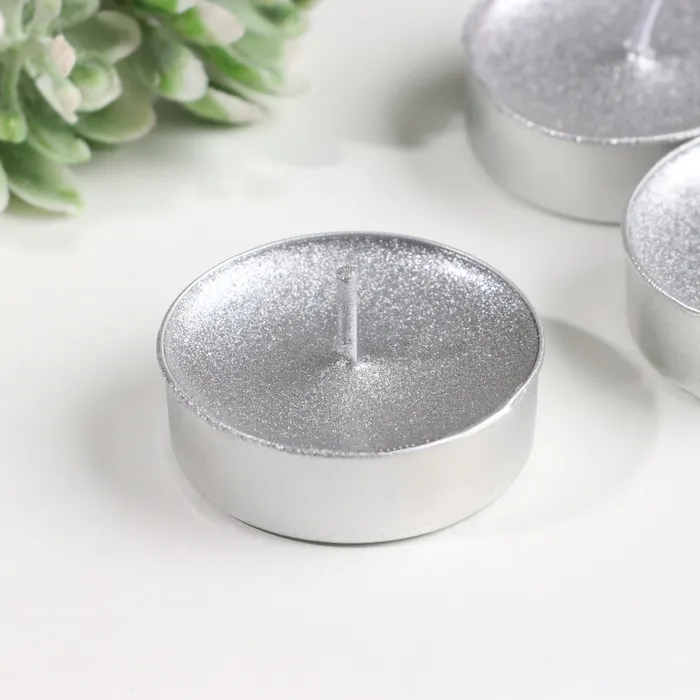 Свеча в гильзе "Шайба", Серебро, 6 шт