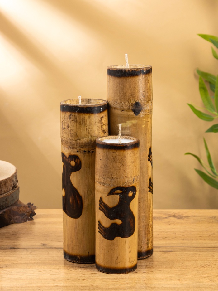 Свеча в бамбуке тройная «Птица», 14×14×30 см, 100 мл, бежевая